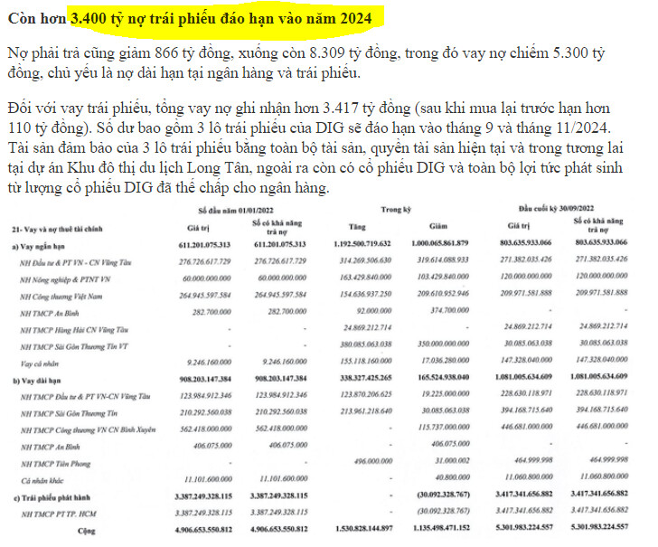 Trái phiếu DIG đáo hạn thì tháng 9 và 11.2024 thì còn xa lắm