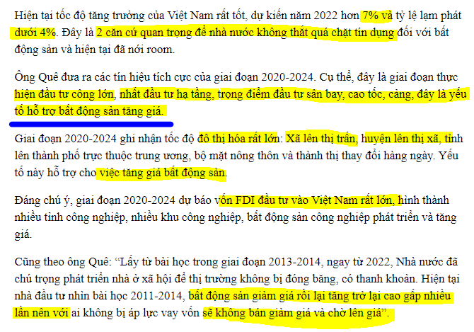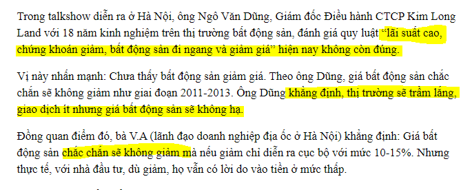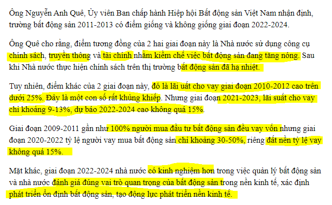 PGS. TS. Đinh Trọng Thịnh nhận định, thời điểm hiện tại, thị trường đang thanh lọc để minh bạch hơn. Trong thời gian tới, với động lực từ dòng vốn ngoại, các chính sách điều tiết bình ổn của Chính phủ, thị trường bất động sản sẽ nhanh chóng sôi động trở lại.