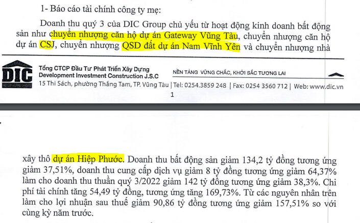 Doanh thu quý 3.2022 chủ yếu từ chuyển nhượng căn hộ, quyền sử dụng đất, nhà xây thô: (1) Gateway Vũng Tàu; (2) CSJ; (3) Nam Vĩnh Yên; (4) Hiệp Phước.