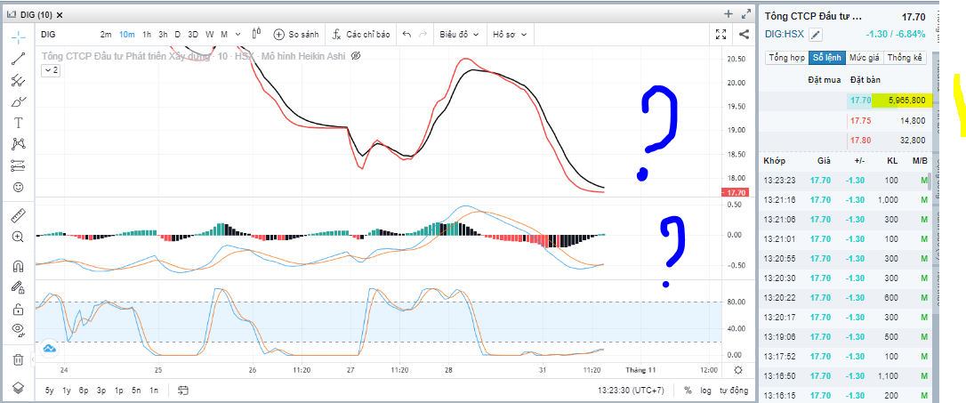 DIG 13h chiều nay 31.10.2022 là một hiện tượng sẽ dần rõ ra. Sao lại quay lại đáy sàn 17.7 hôm trước, muốn xuống tiếp sao, hay xuống lần cuối rồi quay xe? Hay do báo cáo lỗ 15m2 đất 900tr? Hay cá mập muốn nhắn gì? Hay lãnh đạo công ty đang im lặng có ý gì? Hay do bên ngoài lãi suất, hay vĩ mô? Chờ 2h xem có bay số sàn không.