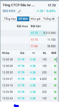 triết lý đơn giản, 4 chữ gọn gàng, áp dụng và DIG là hợp. Lúc này mới có 13h56 mà DIG đang sàn 6.4tr giờ còn 5.4tr, rất nhanh.