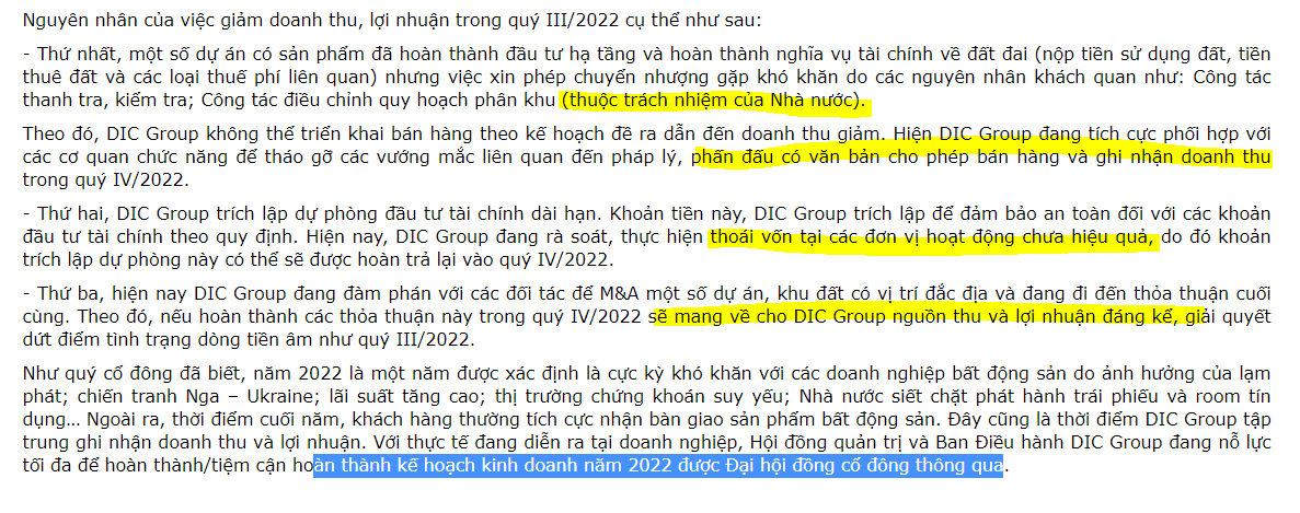 DIG gửi thư cho cổ đông giải thích việc bị âm 15 m2 đất (giá 60tr/m2) = 900tr, điều này cho thấy họ rất coi trọng cổ đông và rõ ràng về nguyên nhân cũng như cách khắc phục. DIG cũng nên viết một cái thư gửi cổ đông để nói về tiến độ cô Huyền và ông Tuấn đăng ký mua cổ phiếu 20tr và 10tr đến đâu rồi, đã mua được bao nhiêu rồi, bao giờ mua xong. Tôi nghĩ họ nên mua gấp đôi số đã nói bằng mồm với cổ đông và truyền thông để tăng uy tín, vì nhiều người còn đang nghi ngờ họ nói có thật không, có làm không, có lừa không.