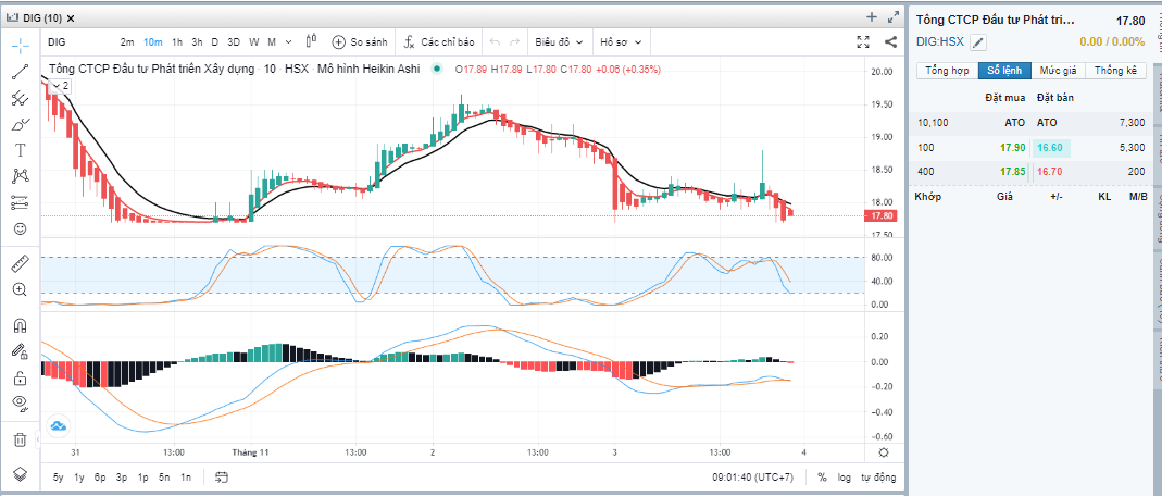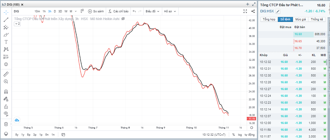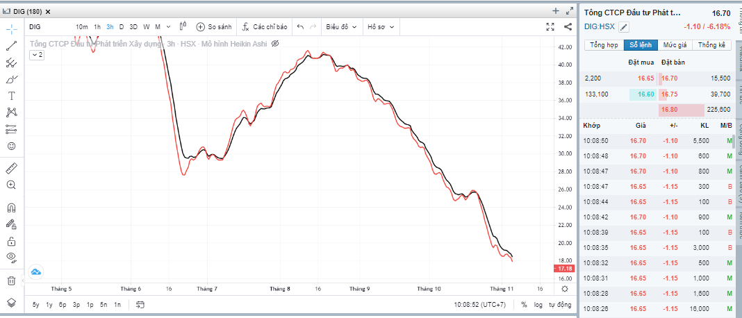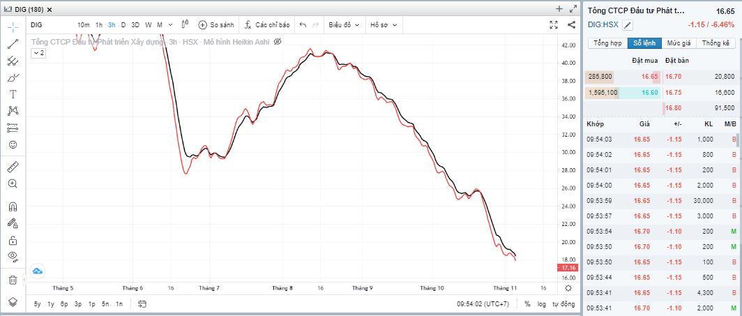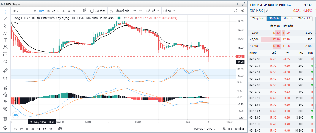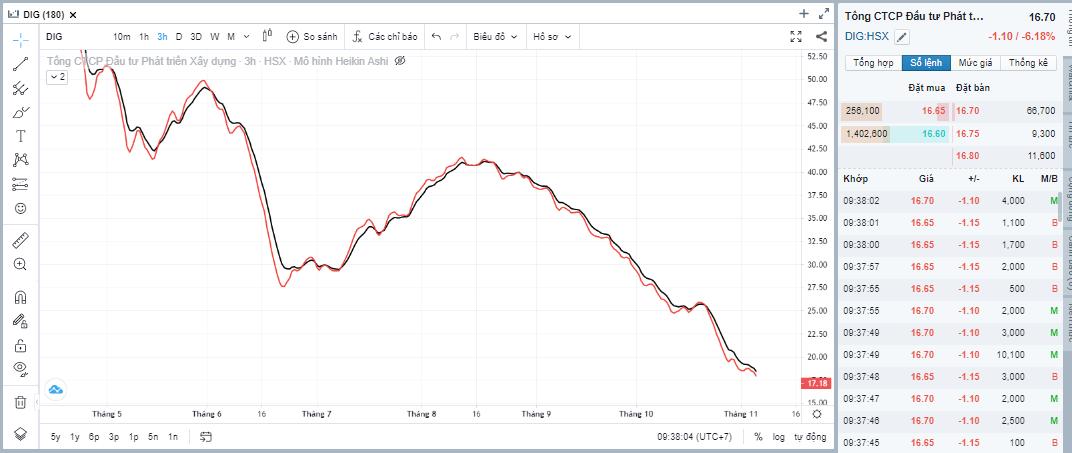 DIG bắt đầu giờ ATO thứ 6, ngày 4.11.2022 với đầy khó khăn, khó khăn là hôm qua giá đỏ 17.8, thủng 18. DIG sẽ diễn biến tiếp theo thế nào, xuống tiếp thủng 17 hay đâm lên để trần 19. Chờ xem.