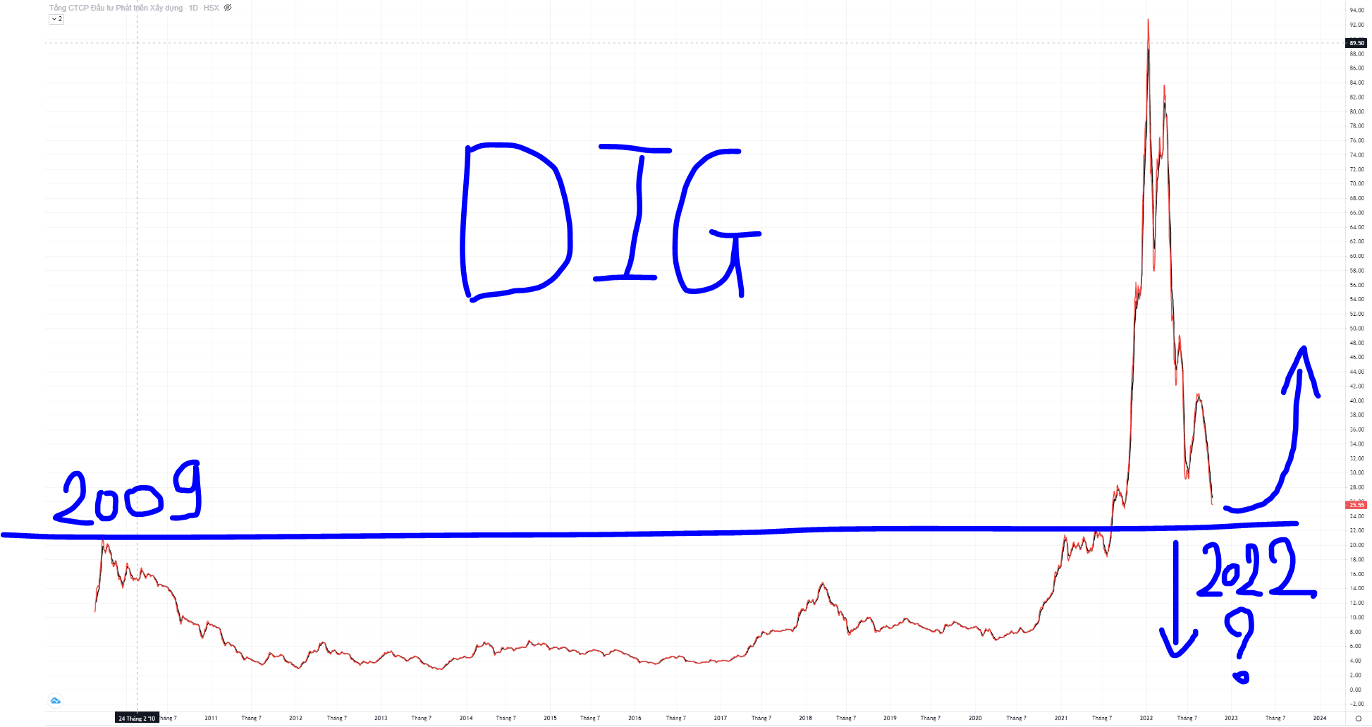 DIG về lại giá năm 2009, giá sẽ lên tiếp hay xuống tiếp. Giá đất năm 2009 và giá đất 2022 bây giờ đã khác nhau nhiều. Chờ xem.