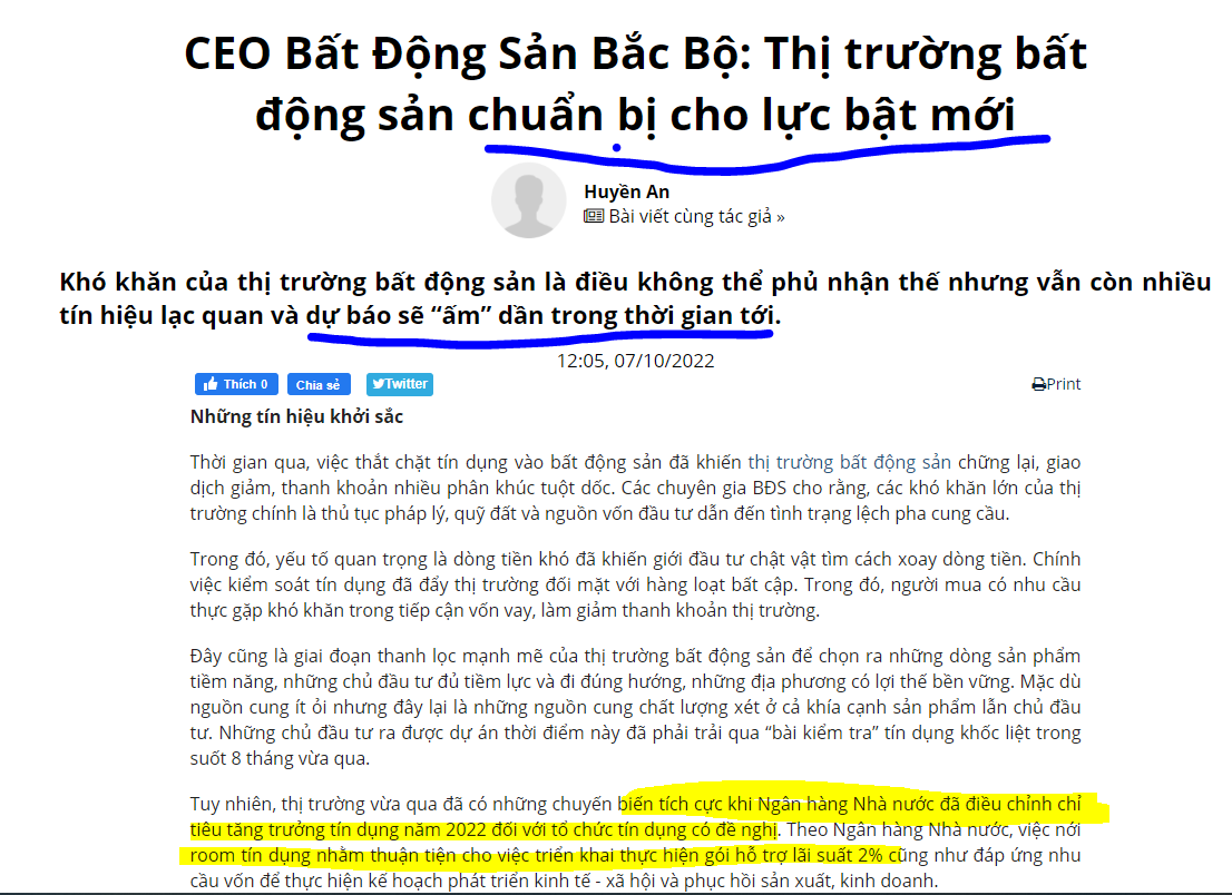 … khó khăn chung của Bất động sản, đến Kinh Bắc mà còn bay 40%, giờ lại thi nhau MUỐN bắt đáy - thì cũng là cái gì đó tích cực đang bắt đầu. Chờ xem.