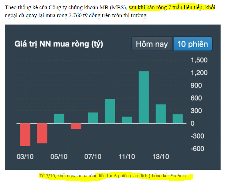 … khi khối nội bán thì khối ngoại mua ròng liên tục 6 phiên. Chờ quan sát khối ngoại sẽ lãi hay lỗ. Và bao giờ khối nội quay lại mua ròng, đổ tiền vào.