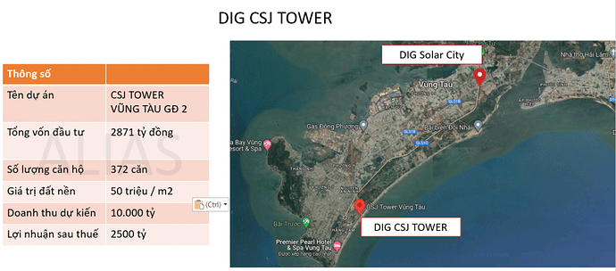 Ngoài dự án Solar City ở trung tâm Vũng Tàu, DIG vẫn tiếp tục phát triển dự án du lịch ở Vũng Tàu là CSJ Tower, kỳ vọng mang lại lợi nhuận 2500 tỷ trong vòng 10 năm tới.