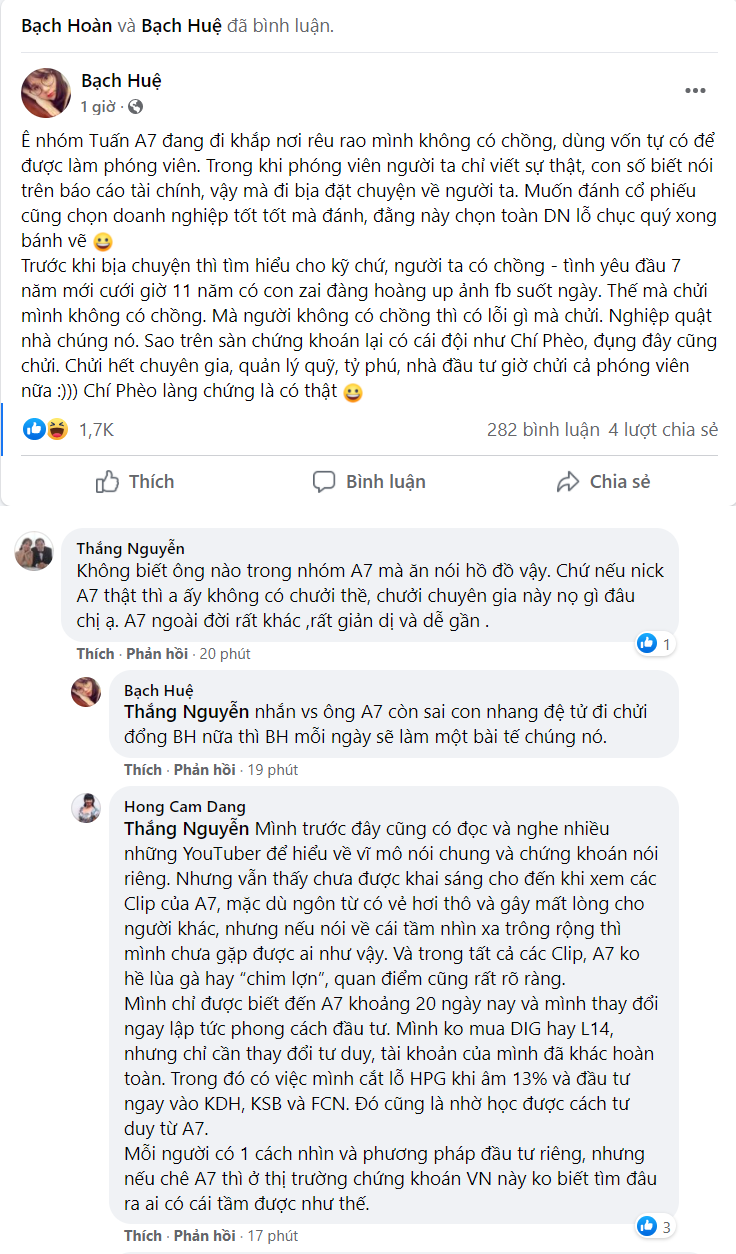 Em xin cảm ơn thầy A7. Từ khi được biết thầy em đã học hỏi, mở mang ra được rất nhiều về tư duy đầu tư cũng như nhìn nhận ngoài cuộc sống. Chúc thầy thật nhiều sức khỏe để dìu dắt nđt trên thị trường đầy chông gai này ạ.