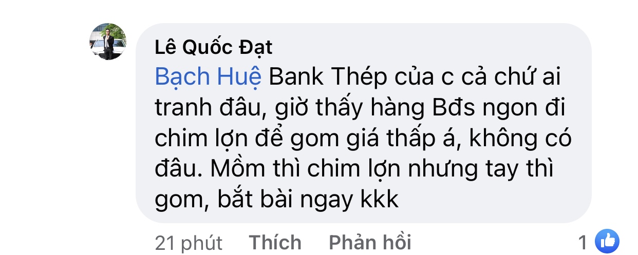 Bạch Huệ cũng chỉ là thèm khát cổ đất mà đi chim lợn để tay gom vào thôi. Ae thông cảm cho nhà báo đi, k đi chim lợn nhiều sao gom được hàng giá tốt.