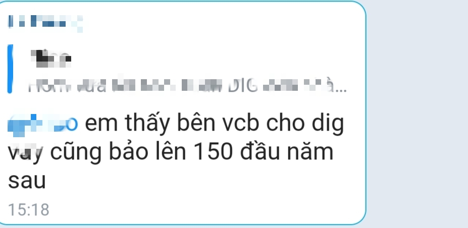 Gồng lãi anh em ơi, Bên Dig khi vay thế chấp CP bên VCB, có cam kết đầu năm sau là lên 150, còn cuối năm sau thì em ko nói target đâu nha, chỉ biết ôm đến hết chu kỳ thôi các bác !