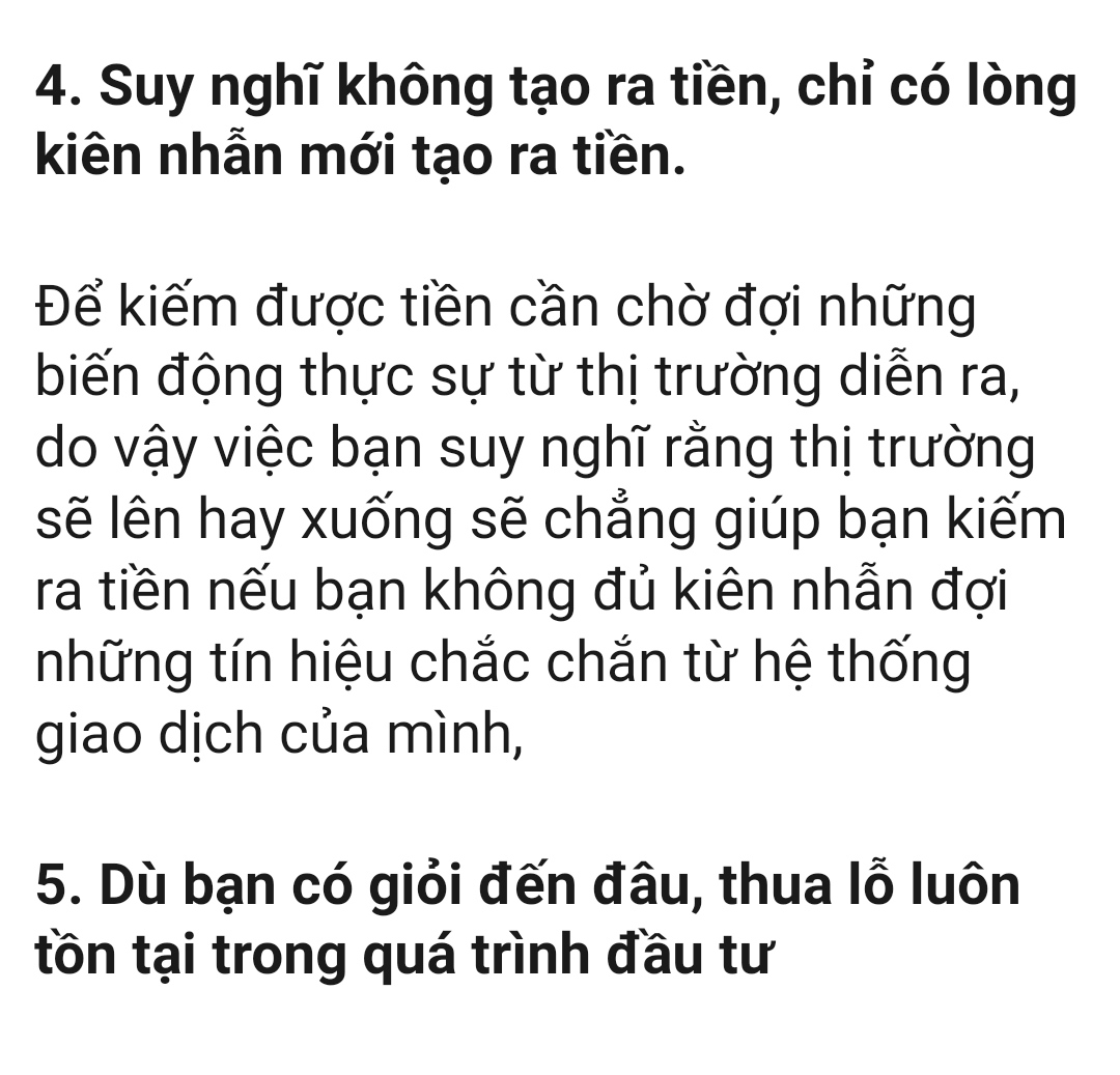 Cảnh báo ! Vì sao đầu tư là cuộc chơi rất ít người giàu.?? Đa phần đám đông họ ko hiểu mình đang làm gì?? Họ mua cổ phiếu xong nhìn thằng bên cạnh mua hay bán, nhìn chiên za phán xét, nghe môi giới hô… thế là họ loạn cào cào mà chết. Thời lạm phát suy thoái có thể léo dài nhiều năm, nỗi lo ko phải là đầu tư thắng thua theo phiên 10-20% mà là đầu tư vào đâu, ngành nào giá sản phẩm hấp thụ và hưởng lợi từ lạm phát… nhưng họ sẵn sàng ném những tài sản tăng bỏ xa lạm phát trong dài hạn như cổ bds ra đường ko thương tiếc. Mĩ tăng lãi suất 0.5-1% thì gãi ghẻ cho hàng triệu tỷ kích cầu sắp bơm ra. Những con sóng thần kích cầu vni 2009 tăng 300% nhiều cổ tăng hàng nghìn % . Nhưng họ lại sợ Mĩ tăng lãi suất bằng móng tay…