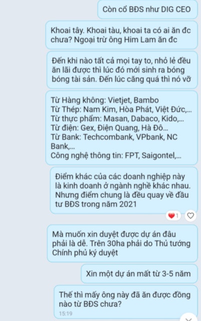 Haha ông này đổi nick tôi không nhớ chỉ thấy bảo bán CEO sang DIG và bảo do CT! Haha yếu vía quá! Múc tiếp và kệ nó đi