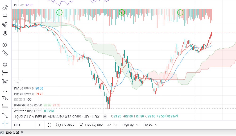 DIG diễn biến rất tích cực. Hiện đã là phiên trần thứ 5 trong 10 phiên và là phiên trần thứ 4 liên tiếp. Cổ đông DIG đang đi lựa siêu xe và shop house. Cá biệt có người đang xây biệt phủ. Hồng phúc A7 ấm no 3 đời