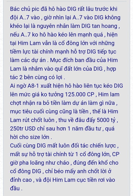 Không nghĩ nó đạp thô bạo đến như thế, đạp một cách lộ liễu trong khi các công ty bds khác dường như chỉ nhìn vào DIG diễn biến thế nào là sẽ đảo chiều tương tự.