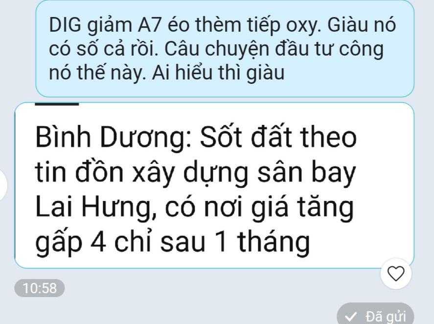 Cổ đông nội bộ toàn mua vào, gia tăng tỷ trọng DIG. Chỉ có Thiên Tân là bán để gom tiền mua phrl. Hôm 29.9 báo cáo bán 2tr cp là cân đủ tiền rồi. Ngày mai cầu vào mạnh vì lấp Gap kết thúc chu kỳ điều chỉnh ngắn hạn bước vào sóng tăng trung và dài hạn. Thủng ma 60 ngày và 20 tuần thì bán luôn. Nhưng khả năng này rất thấp. Dự báo phiên mai DIG sẽ rất sôi động.Lực bắt đáy vùng này rất lớn.