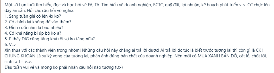 Kaka. Chúc a7 cùng ae cổ đông DIG, L14 tuần mới tràn ngập niềm vui cùng đón sắc tím, xanh