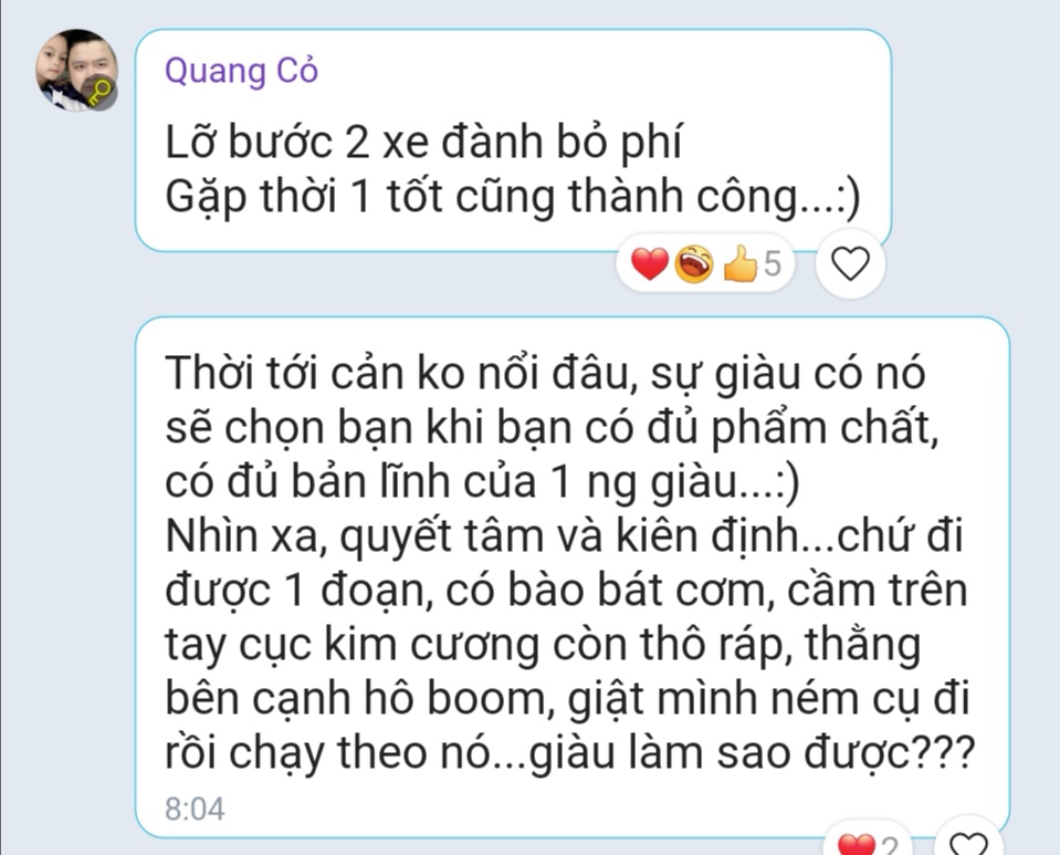 Thầy A7 vào DIG thực ra chỉ một lý do duy nhất. Đó là ban lãnh đạo. Hiện tại bộ sậu của dig đang quyết tâm phát triển công ty và có tham vọng vô cùng lớn. Thằng lãnh đạo có tư duy như thế không bao giờ đi úp bô nhỏ lẻ kiếm vài xu vài hào là cái thứ nhất. Tiềm năng dig quá lớn với số lượng đất nắm giữ giá rẻ có từ lâu đời tạo ra nhu cầu tăng giá cao là thứ hai. Chính phủ bơm tiền đầu tư công ngành bds hưởng lợi là thứ ba. Tôi đã tất tay vào dig và l14 bởi những lẽ đó, trước ngồi phân tích các thứ nhiều nhưng từ khi nghe thầy A7 và đặc biệt là xem thấy các doanh nghiệp mà A7 chọn lựa và phát triển qua năm tháng lại thấy vô cùng chính xác. Dig có thể là bài toán cho 5 năm tới. Ai giữ được sẽ giàu có, ai có tâm lý ăn nhanh, ăn sẵn không kiên định ngay từ đầu dễ thất bại vậy thôi.