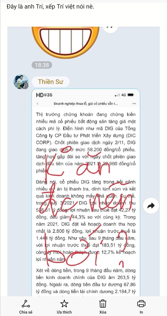 Anh em DIger chú ý. Hôm nay ra hàng chủ yếu là lượng chốt lãi của một số cổ đông tài chính ban đầu tầm 5-10 tỷ. Chứ thực chất theo quan sát nhà đầu tư lớn chưa ra hàng dù chỉ một cổ. Phiên mai áp lực giảm đầu phiên xong với độ hot DIG thì ai bán hôm nay sợ mất hàng phải cover lại. Lượng mua mới thì bị nhốt bởi T3. Ai năm Dig lúc này bán thì sợ bật lại mất hàng. Cổ đông lớn thì chưa 1xx-3xx chưa thèm bán.