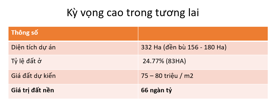 Sau khi giải phóng mặt bằng, kết nối vào hạ tầng giao thông thì kỳ vọng của khu đô thị Long Tân rất lớn. Ước tính giá trị đất nền giai đoạn bán hàng 2024 – 2025 khoảng 75 – 80 triệu / 1 m2. Giá trị đất nền dự kiến khoảng 66 ngàn tỷ.