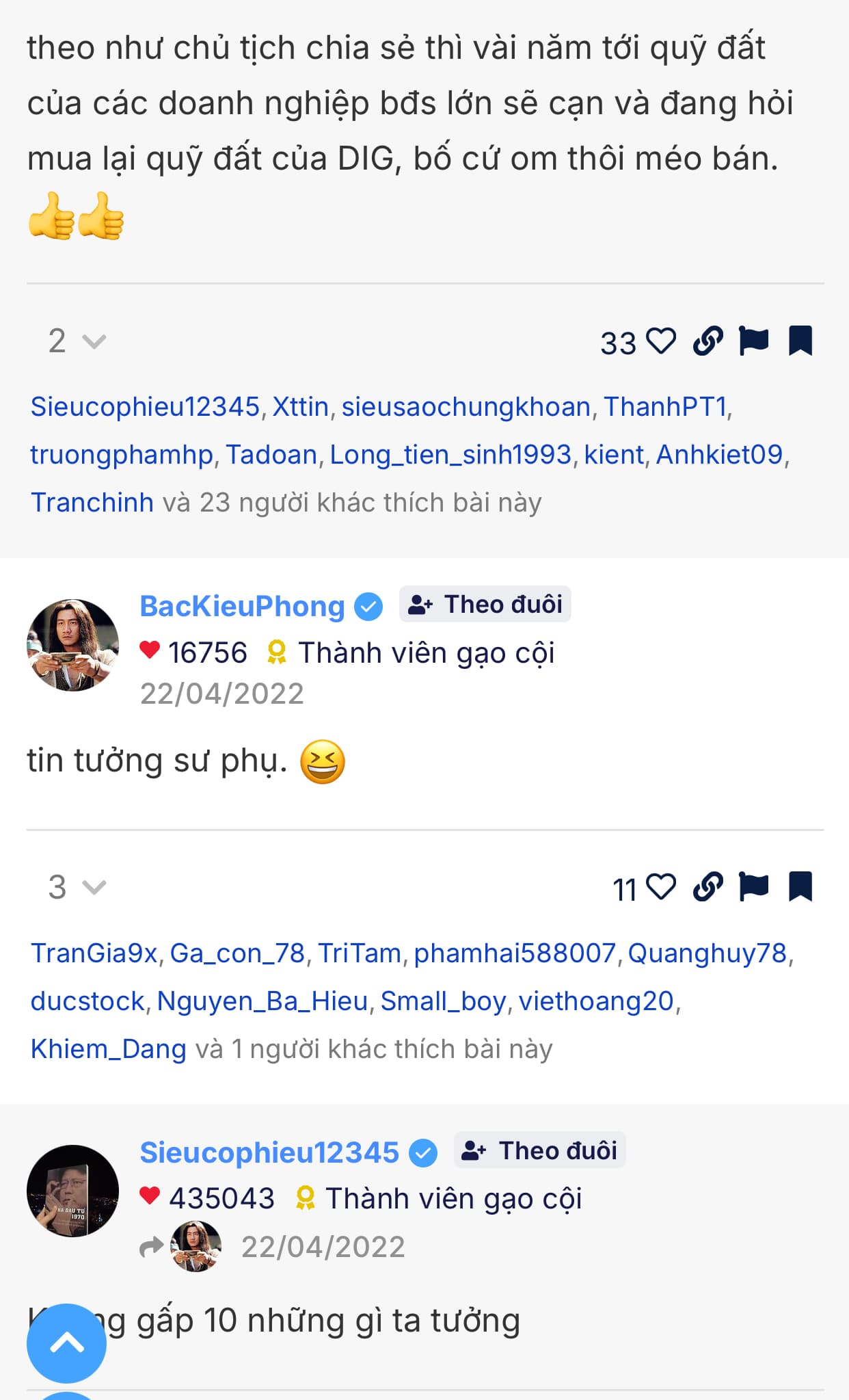 Muốn đột phá đc, ít nhất cũng cần một, vài quý. Các cổ bđs khác như Dxg, pdr, nha…sẽ tăng mạnh. Dig đừng buồn, hy vọng sẽ đến lượt. Giống các cổ công nghệ tăng mạnh nhiều tháng trước, nhưng Yeg mãi mới chạy đc.