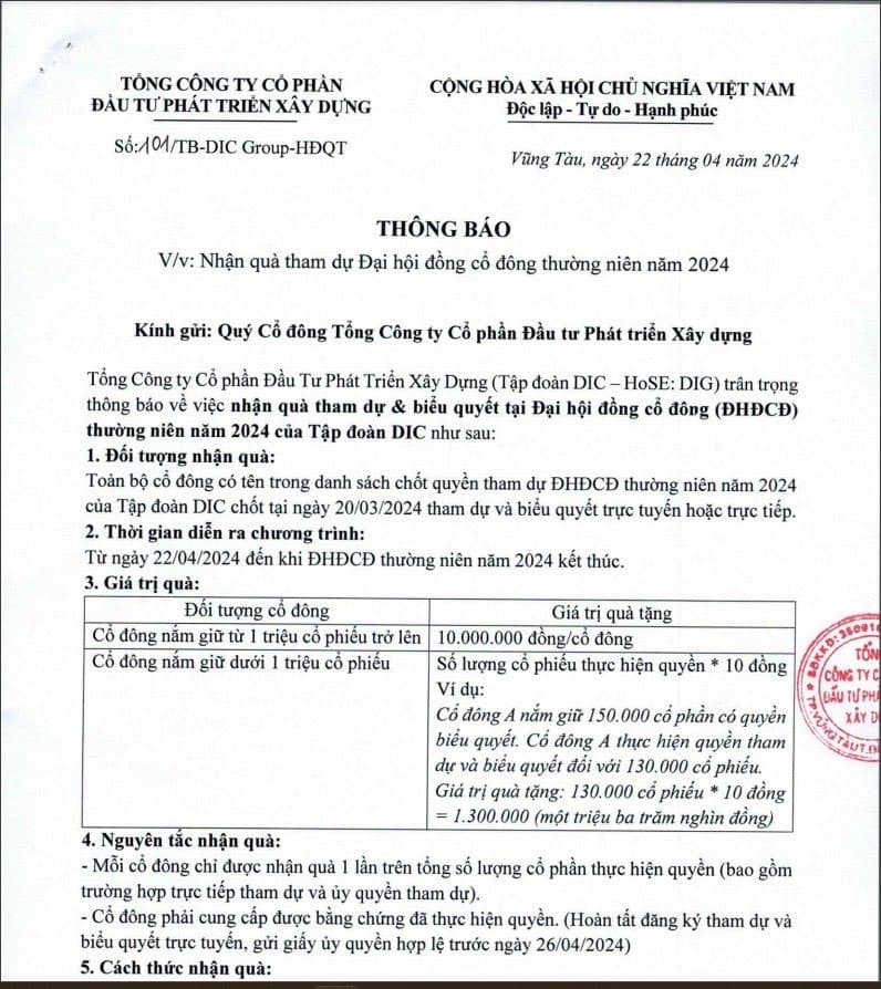 Các Cổ Đông DIG chuẩn bị được nhận tiền nhé. Ủy quyền cũng nhận được tiền nhé. Kkk