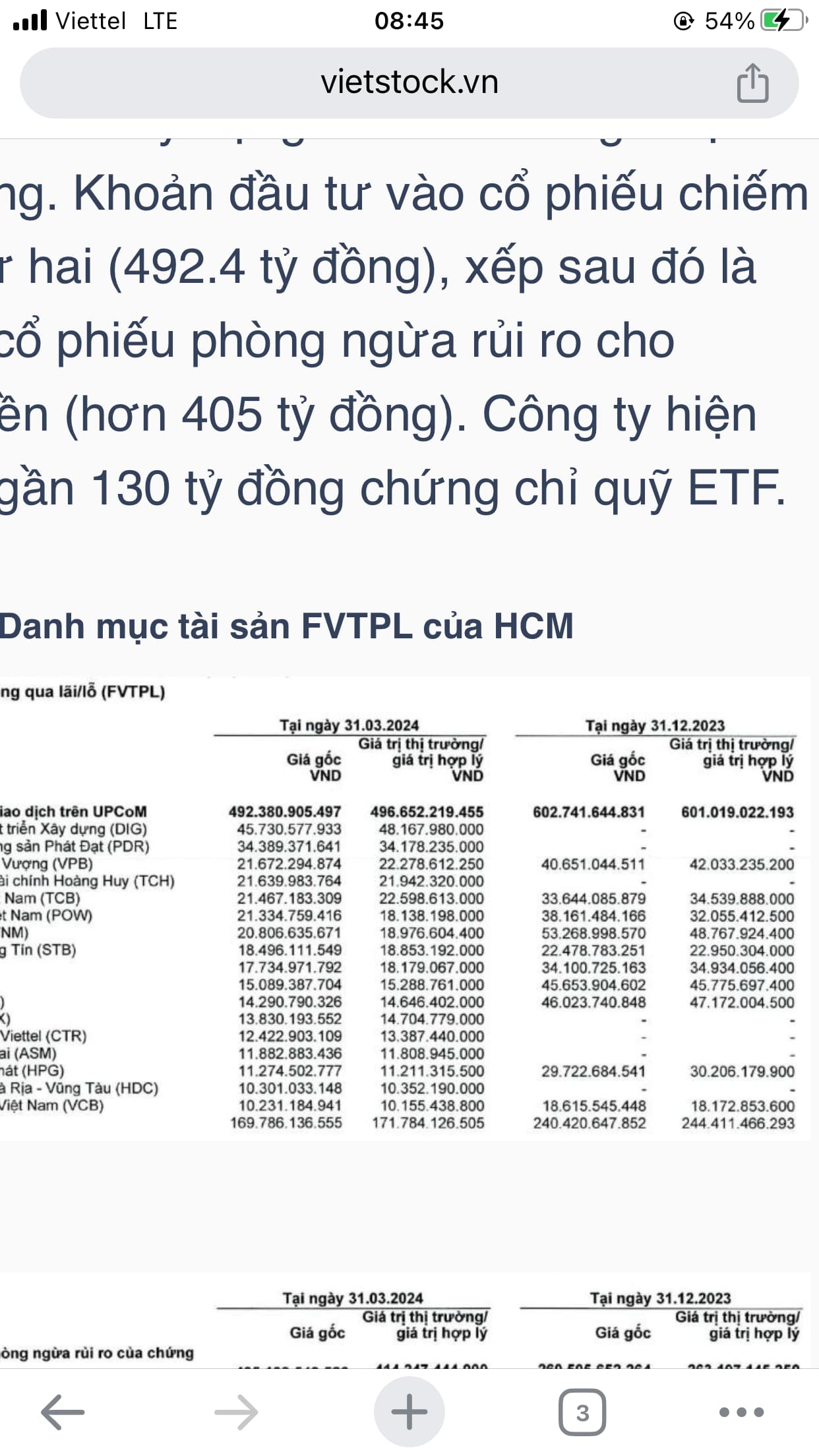 tự doanh HCM đang nắm 45 tỷ DIG, tỷ trong cao nhất trong danh mục, quý 1 bán hết mã VN30 và toàn mua BDS, sắp vào sóng chăng