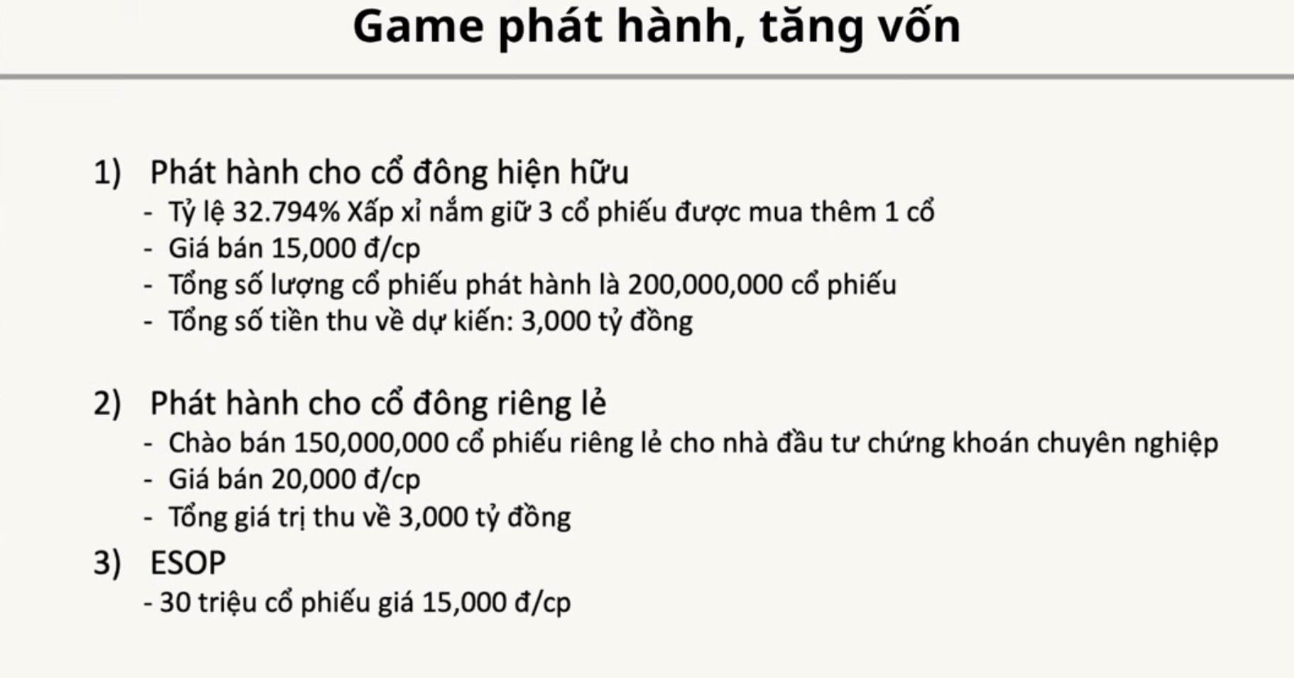 200tr pht cho cổ đông hiện hữu, 150tr cho nhà đầu tư chứng chuyên nghiệp chắc chắn là Thiên Tân hoặc 1 cty nhà chủ tịch sân sau, 30 esop, chu kỳ làm giá cp tiếp theo trận này gà khôn lên nhiều rồi.