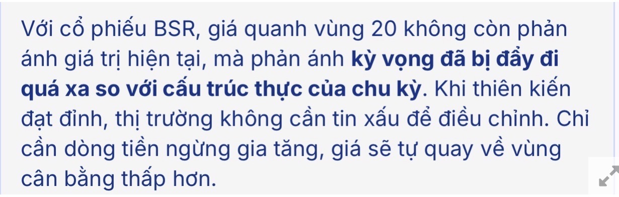 “Nếu có biến cố bất trắc ảnh hưởng mạnh đến ngành dầu thì giá BSR sẽ giảm về vùng 16.