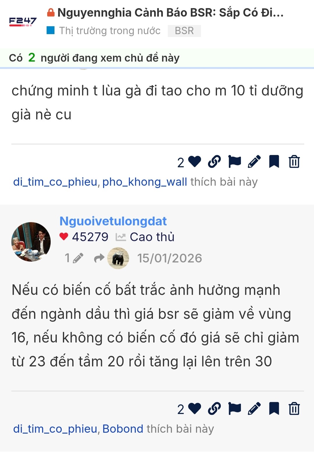 Gần đây có một số tài khoản trên diễn đàn cố tình cắt ghép câu chữ để vu khống rằng tôi “hô BSR về 16”. Đây là cách xuyên tạc rất quen thuộc của những người không đủ năng lực tranh luận nên phải bóp méo thông tin.