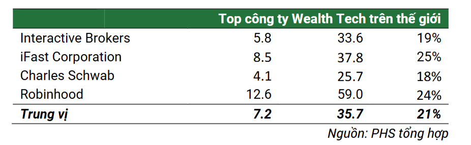 Vì vậy, chúng tôi nghĩ rằng TCBS xứng đáng được định giá ở mức P/E và P/B hợp lý cao hơn so với trung vị ngành. Mặt khác, khi so sánh với các công ty Wealthtech trên thế giới như Interactive Brokers, iFast Corporation, mức định giá của TCBS cũng được xem là khá cạnh tranh.