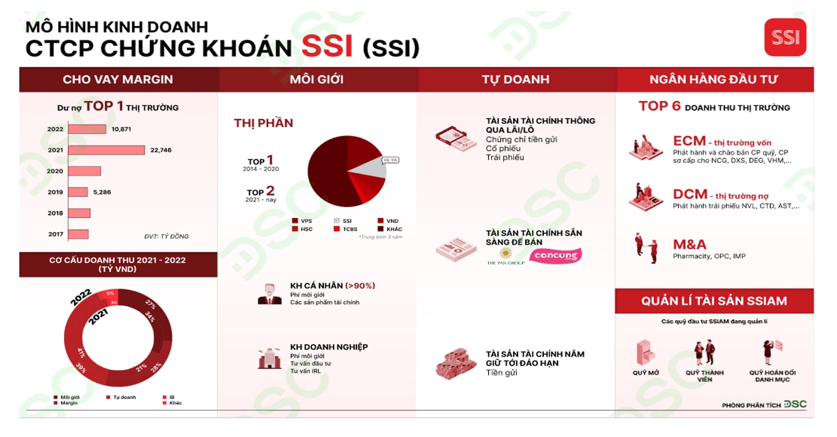 - Đối với SSI, gần như tương xứng về 3 tiêu chí trên với TCBS, do đó ta có thể thấy mức định giá của SSI phù hợp ở mức 50500 VNĐ/cổ phiếu, tương ứng với mức ở mức P/B ngang với TCBS, tương ứng với mức upsize 25,44% so với mức giá hiện tại. Với hướng đi chủ yếu vào cho vay và danh mục tự doanh an toàn, cùng với mảng kinh doanh về tài sản số, SSI còn khá nhiều dư địa tăng trưởng lợi nhuận.