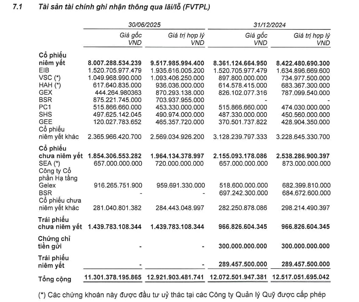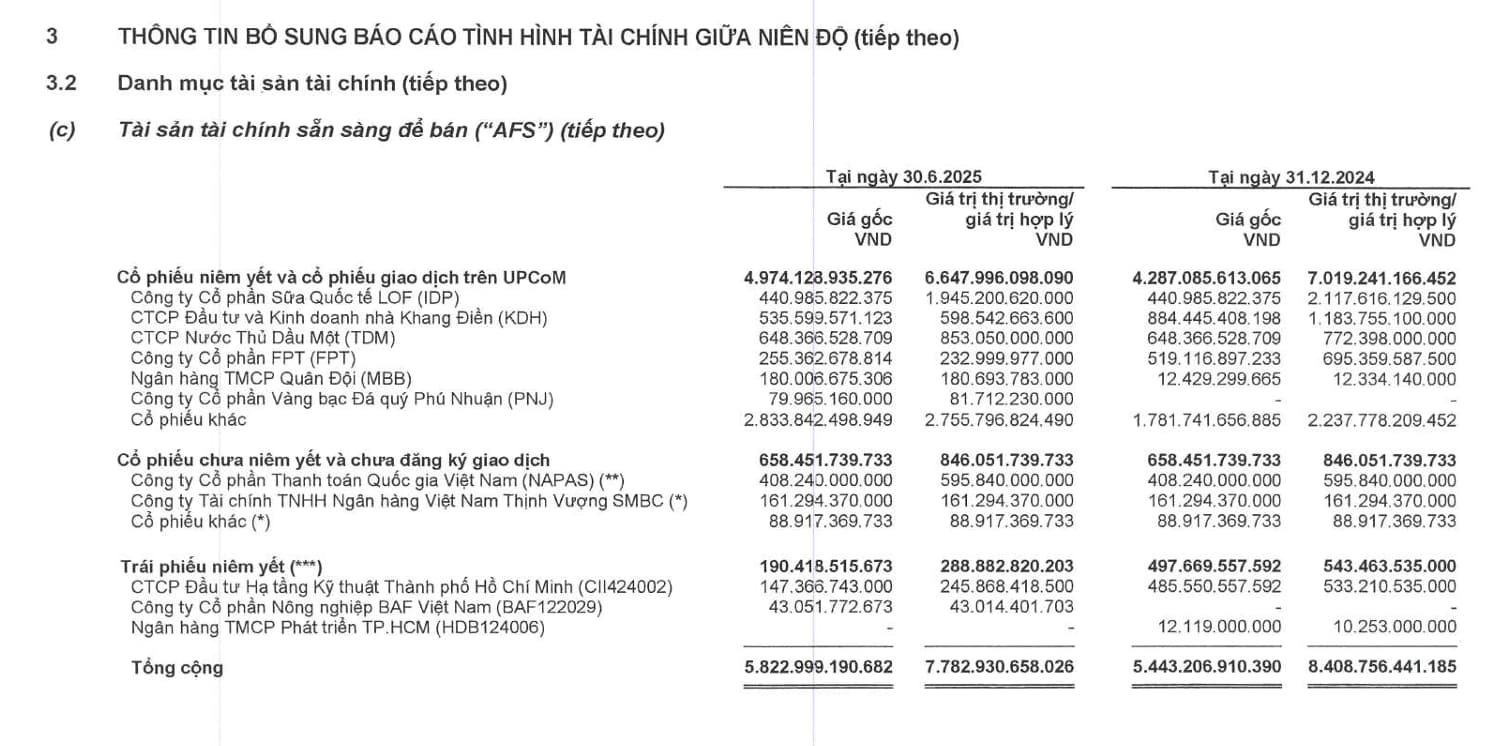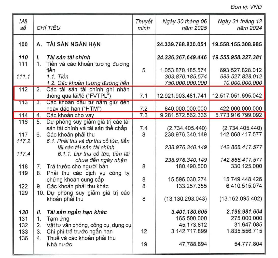 | Mã chứng khoán | Vốn hóa thị trường (tỷ) | Vốn chủ sở hữu (tỷ) | Lợi nhuận 6T/2025 (tỷ) | P/B |