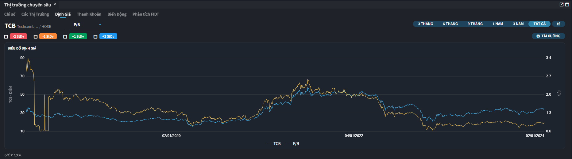 Định giá: Hiện tại TCB đang giao dịch dưới book value. P/B trong thời kỳ hoạt động bình thường của tcb rơi vào khoảng 1.2-1.3