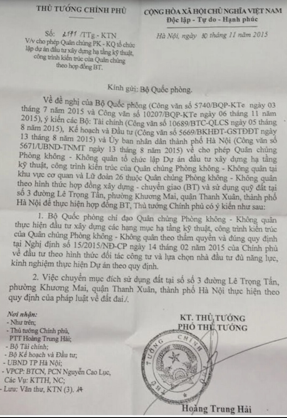 Cuối năm 2015, khu đất dự án số 3 Lê Trọng Tấn được Thủ tướng Chính phủ chấp thuận chuyển thành đất sử dụng lâu dài