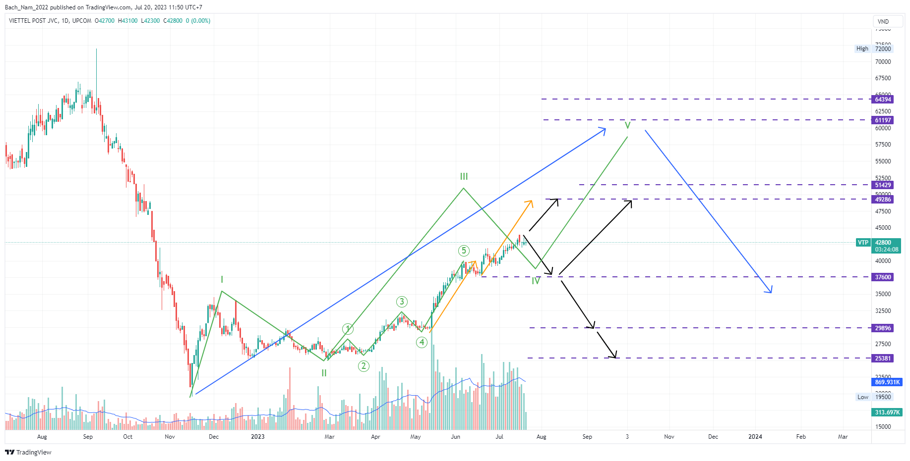 Ở bản vẽ cũ Nam đã xác định sóng 5 xanh biển mở rộng có mục tiêu tương đương độ dài sóng 5 xanh biển tạo đỉnh sóng III.