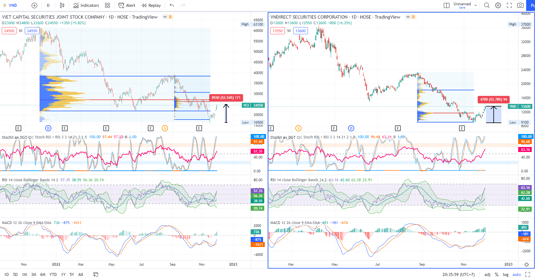 Em vào muộn thế? So sánh thì nên so sánh thế này, về biên hồi, VCI hồi lớn hơn và biên độ sóng rộng hơn SSI, còn so với VND thì nó tương đương về mức hồi đấy, nhưng về cấu trúc sóng VCI biên rộng hơn nên chưa chinh phục được hai đỉnh liền trước và cấu trúc mã chứng khoán đi khá đồng nhất với Vnindex. VCI vẫn mục tiêu để chinh phục trước khi chỉnh là khu 26-29, khung H1 của nó cũng phân kỳ (không có nghĩa giá giảm luôn), khối lượng chủ động mua hôm nay nó vẫn tốt nên kỳ vọng chinh phục khu mục tiêu trên.
