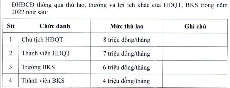Theo tài liệu dự báo cáo đại hội, năm 2022, lương bình quân của người lao động là 23 triệu đồng/người/tháng - cao gấp 3 - 6 lần thù lao của HĐQT, BKS năm 2022.