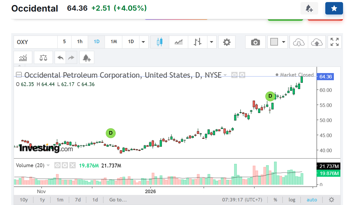 Cổ dầu Mỹ thì leo chưa thấy đỉnh như Chevron, Occidental Petroleum Corporation (OXY) của cụ Warren, hay Exxon vv…