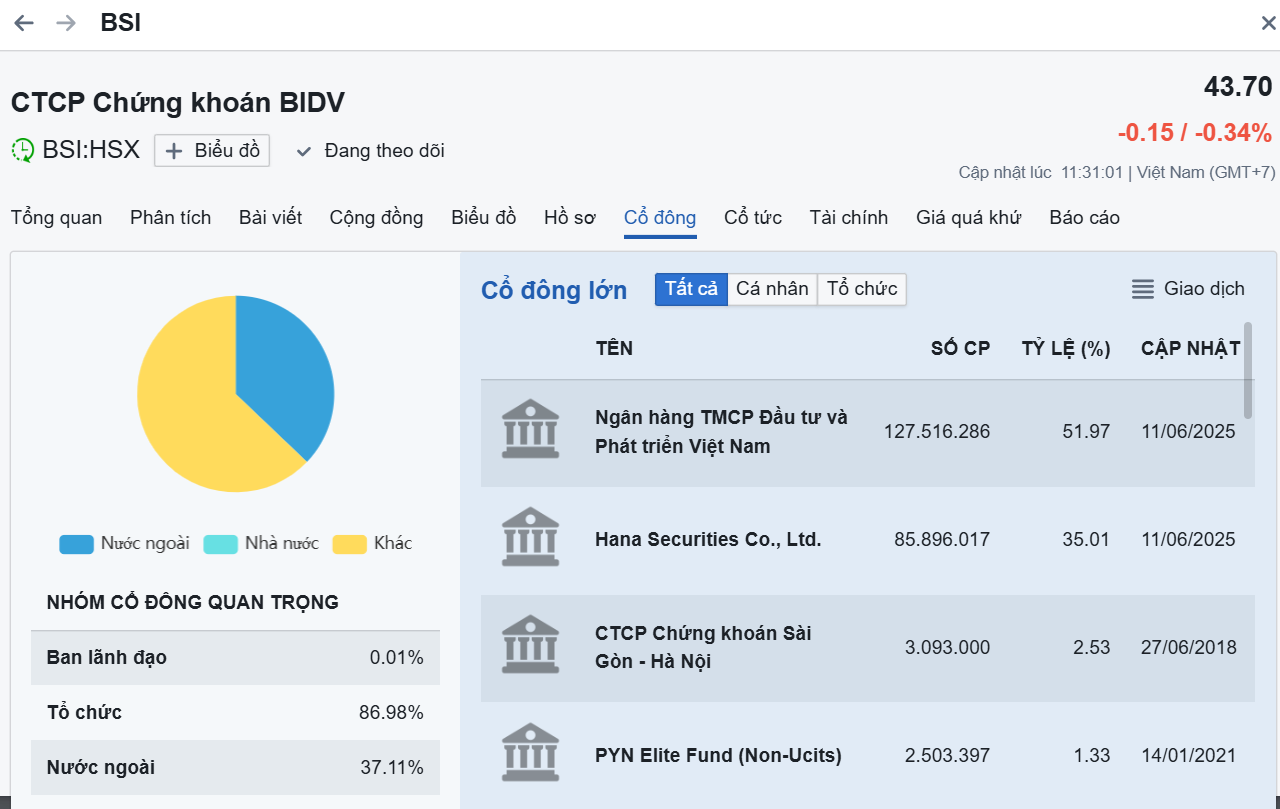 đội nào dùng tk ngoại đè nó 3 tháng liền mà, họ bán liên tục gần 10% tổng cổ phiếu lưu hành, trong khi không có cổ đông ngoại lớn nào đăng ký bán cả, ép vậy bà con đa số chạy mất hết rồi, ai cầm thì cũng ấm ức vì cả dòng tăng mạnh còn nó cứ lẹt đẹt, bsi có lẽ là cổ chứng khoán đau khổ nhất trong gần 3 tháng qua