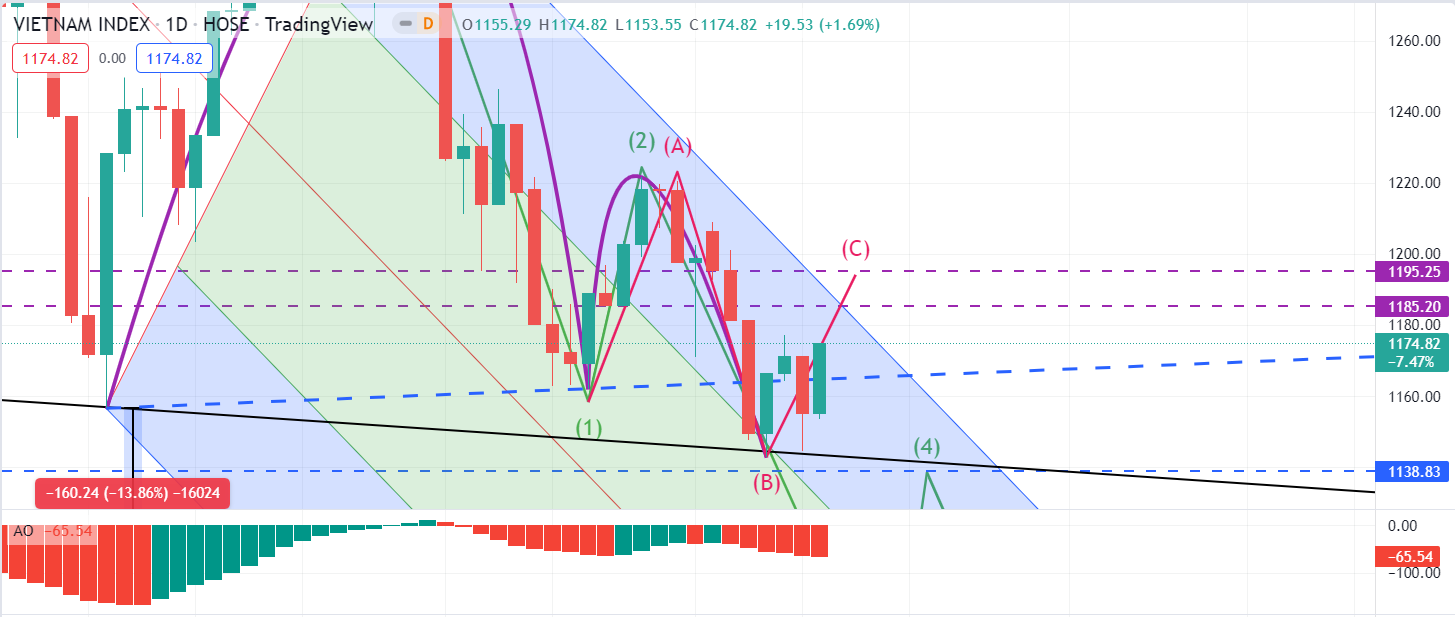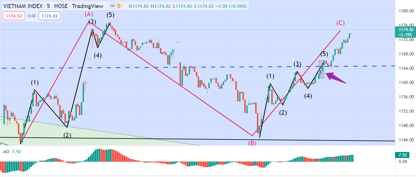 Count hết sóng, phân biệt hết sóng bằng chỉ báo AO phân kỳ, nhưng sau đó sóng tiếp tục lên gọi là mở rộng, tùy nó ở đâu để xác định mở rộng ở sóng nào. Hết lớp sóng nhỏ thì có lớp sóng lớn hơn,…