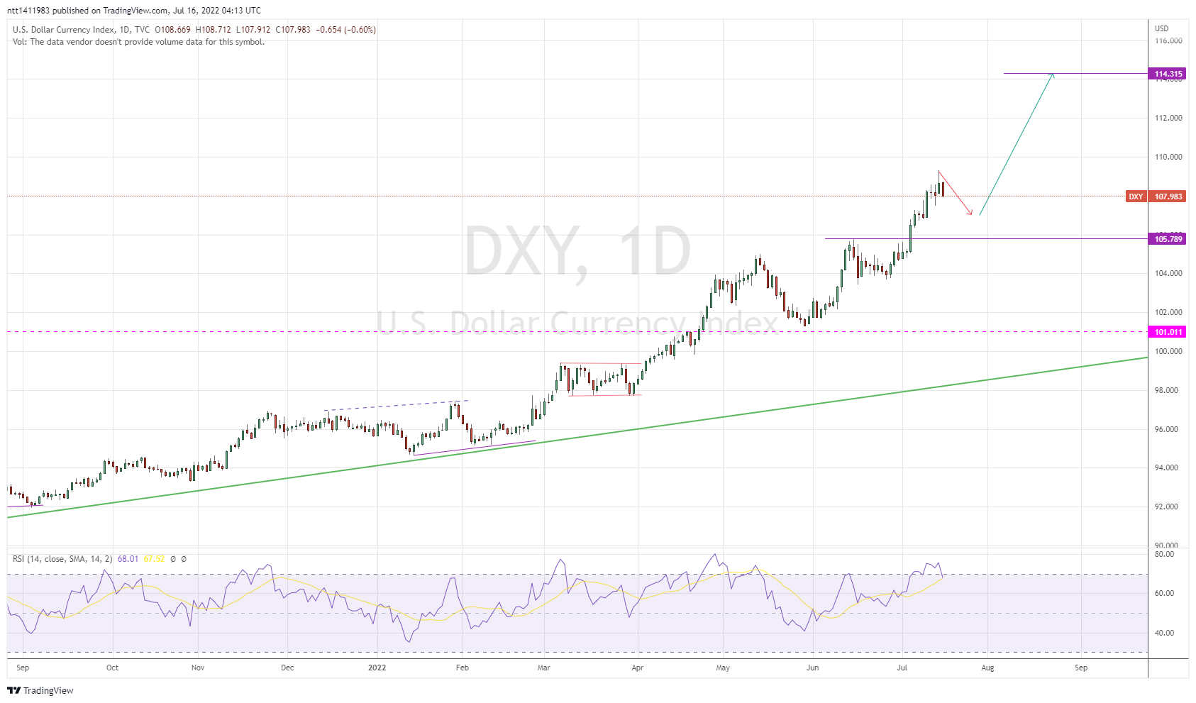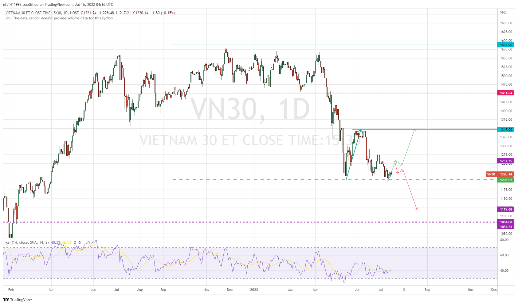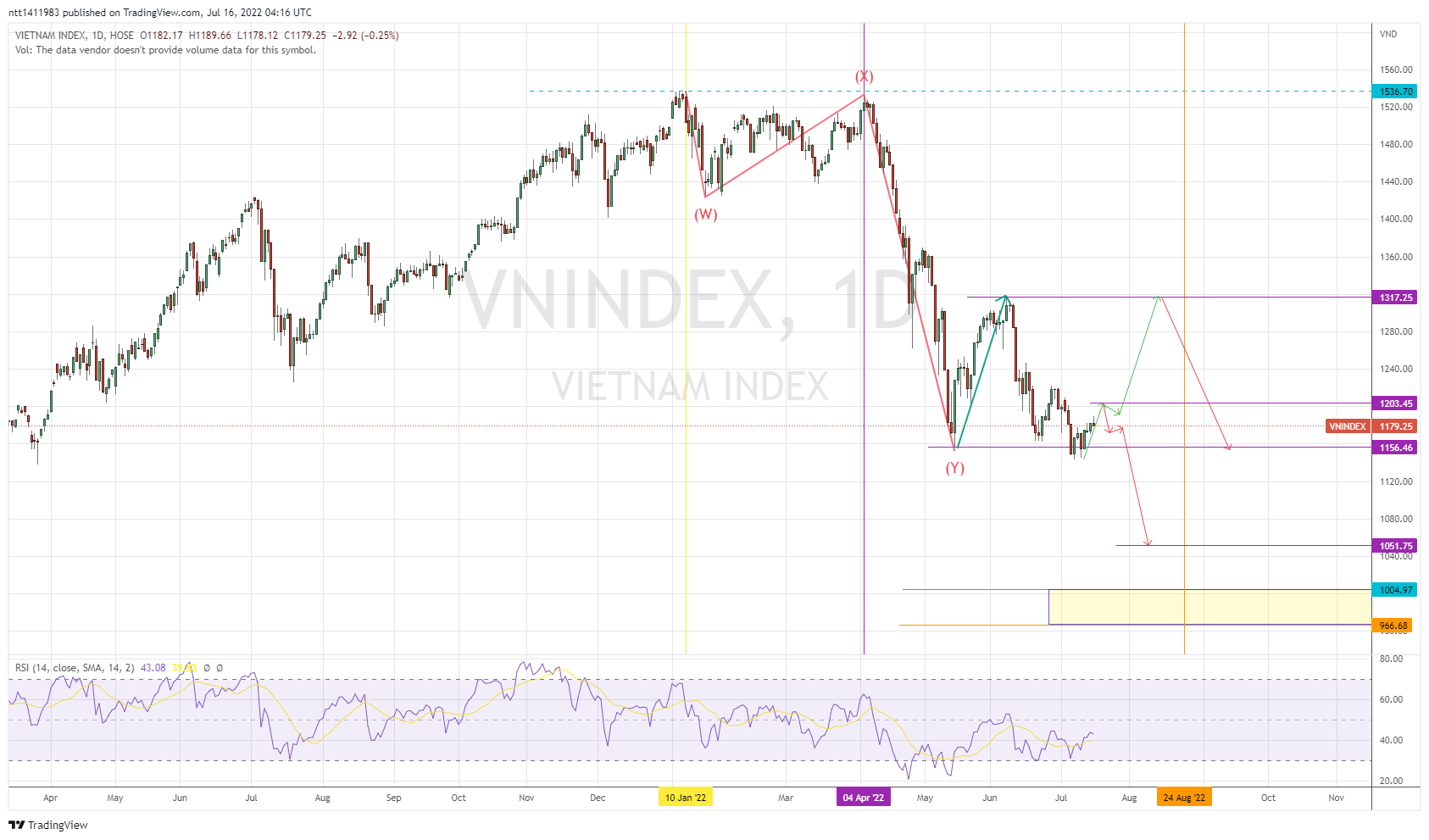 GDP Mỹ thì xác suất cao sẽ âm tiếp (28/7 ra báo cáo, 27/7 Fed họp quyết định mức tăng lãi suất sau đó là ECB), hai quý liên tiếp là dấu hiệu suy thoái độ tin cậy cao dần, vấn đề còn lại là điểm rơi và tốc độ rơi, giá dầu thì theo sóng vẫn có nhịp lên 120 xác suất cao hơn breakdown vì chưa có dấu hiệu nào để giá dầu giảm ngoài Zero covid Trung Quốc, lo ngại suy thoái. GDP Trung Quốc xác suất cao là giảm rồi. Hai nước này trực tiếp tác động đến tình hình của VN.