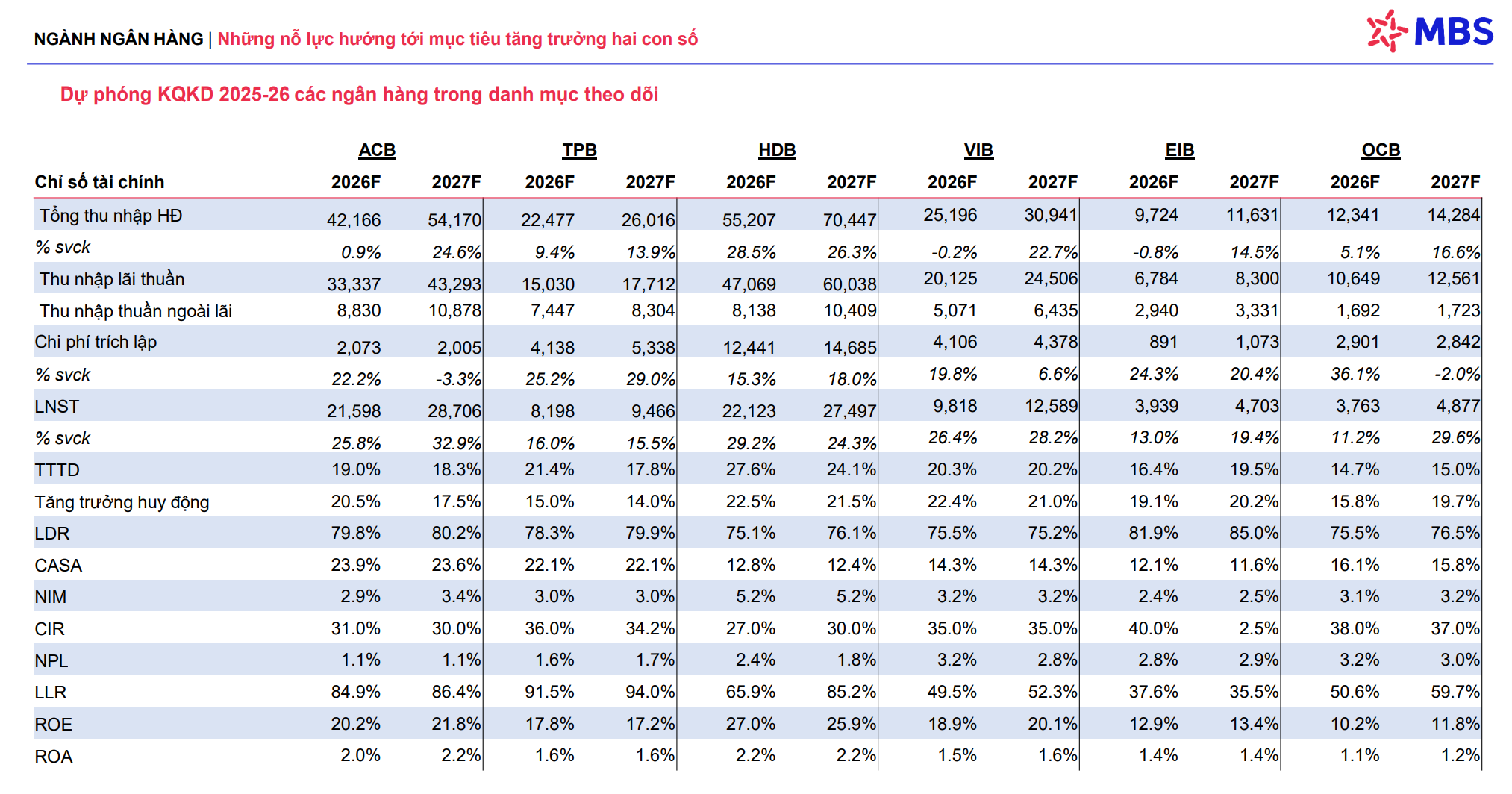 HDB – Top tăng trưởng lợi nhuận 2026 của MBS: