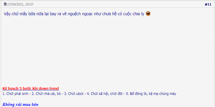 trước đây bọn mình cũng như thế, thị trường giảm là phải tìm 1 lý do để chửi…không có lý do thì quay sang chửi nhau lẫn nhau