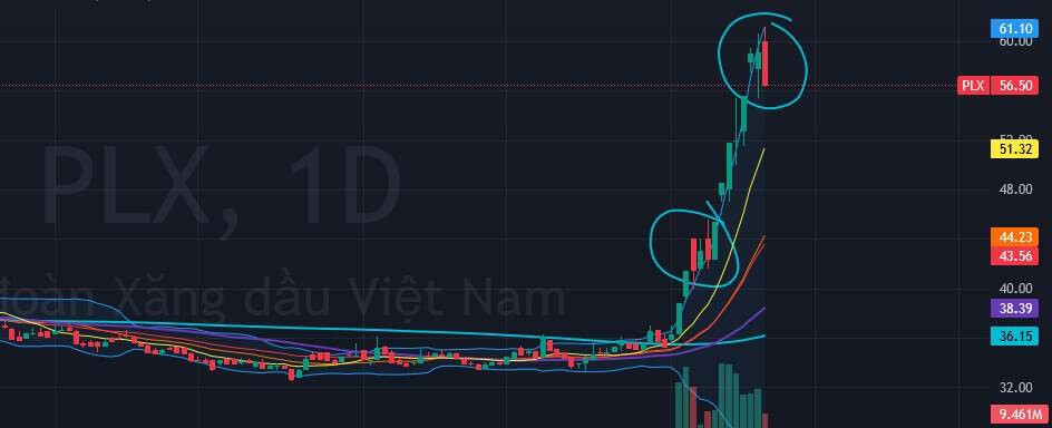 Các cây nến tăng rướn, biên độ lớn → rủi ro rung lắc, rũ hàng 1–3 phiên tới hoàn toàn có thể xảy ra