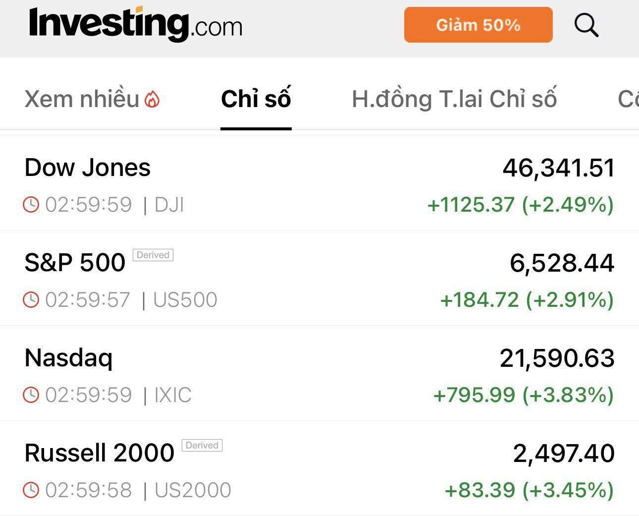 Dow Jones bật tăng bùng nổ 1.125 điểm.