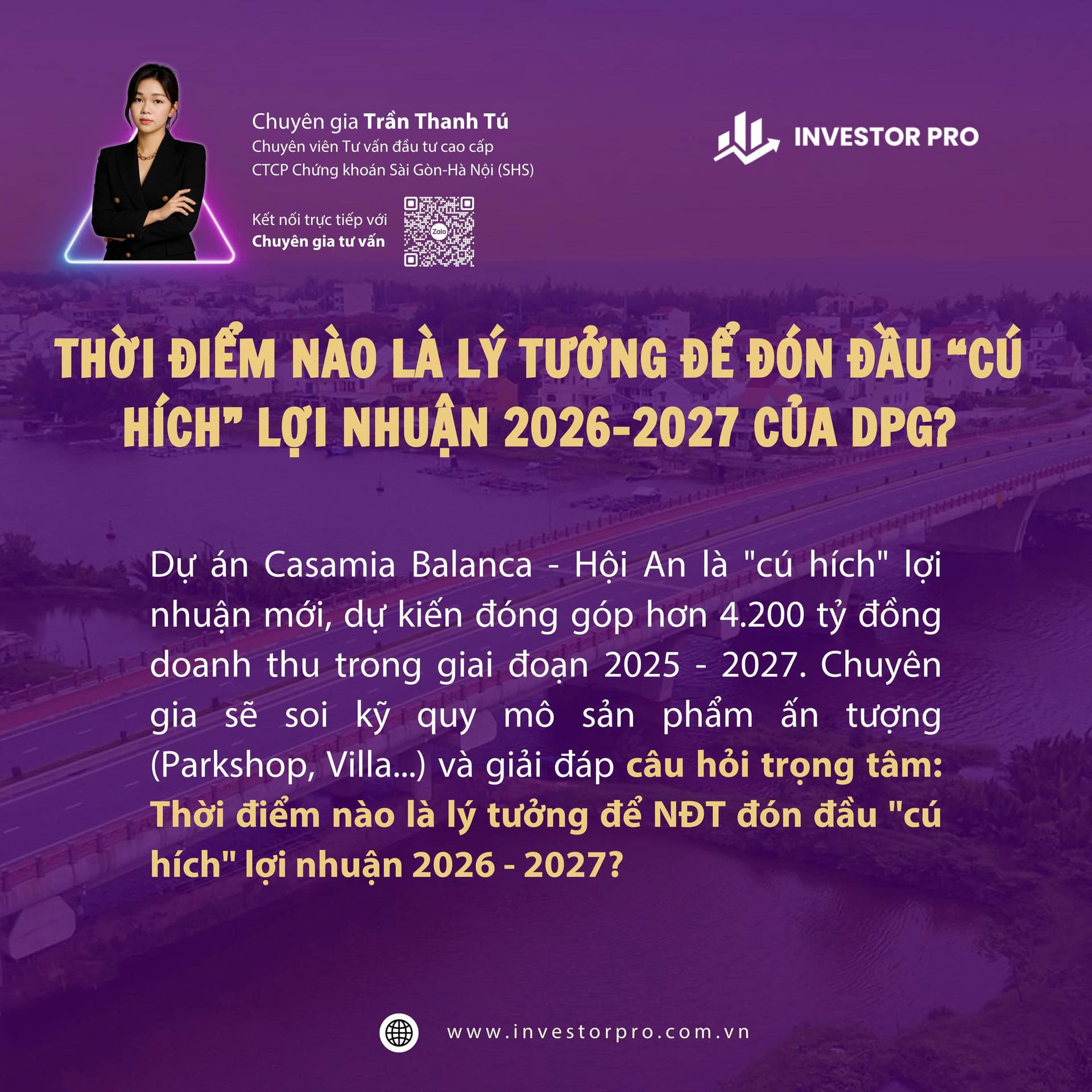 Cổ phiếu DPG – doanh nghiệp với mô hình “Kiềng 3 chân” (Xây lắp tạo nền tảng, Thủy điện tạo dòng tiền đều, Bất động sản tạo tiềm năng bứt phá) đang được kỳ vọng cao. Điểm nhấn lớn nhất lúc này chính là dự án Casamia Balanca - Hội An, được đánh giá là “cú hích” lợi nhuận mới, hứa hẹn lặp lại chu kỳ tăng giá thần tốc như giai đoạn 2019-2021, khi DPG mở bán thành công với chuỗi dự án Casamia Balanca - Hội An.