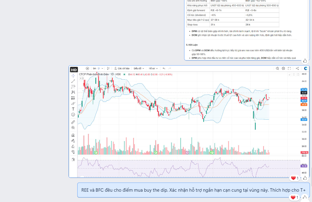 - DCM dù LNST Q2 thấp so với Q1 do chi phí dự phòng nhưng vẫn tạo ra dòng tiền tốt, định giá hấp dẫn.