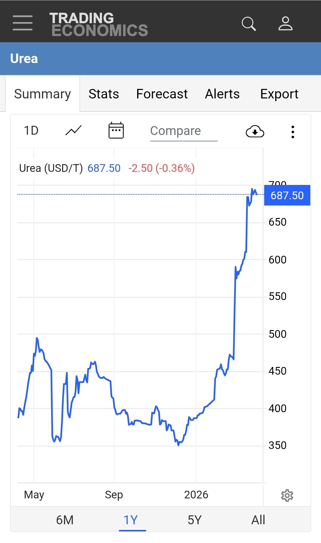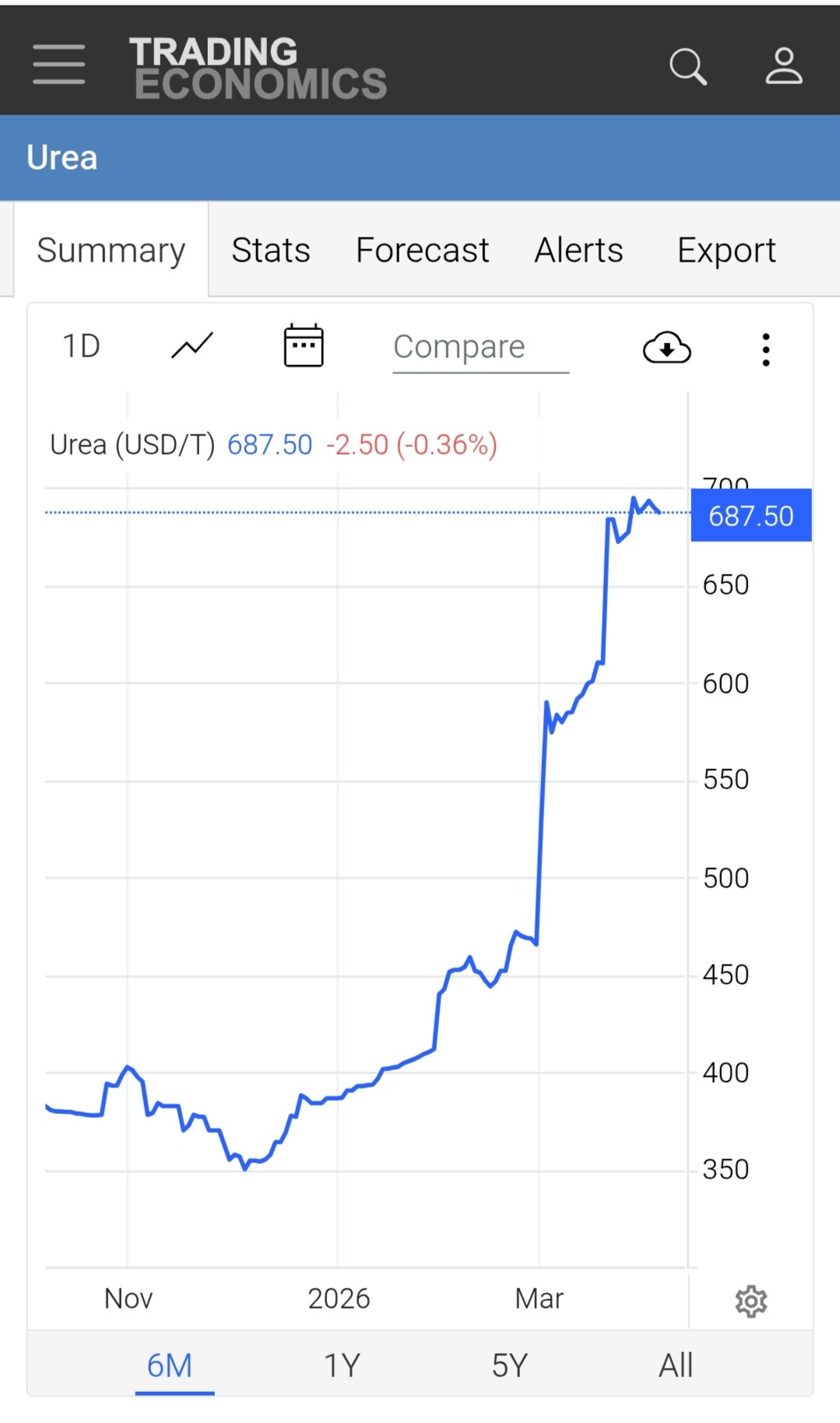 Giá Urea lấy từ Trading Economics là giá FOB Middle East, chuẩn tham chiếu toàn cầu.