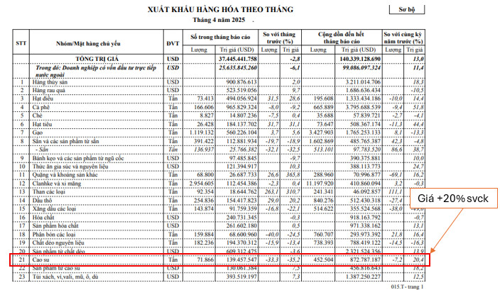 Future cắm nhưng giá bán bình quân vẫn tăng so với cùng kỳ bác ạ. Bên dưới là số liệu sơ bộ của Cục hải quan tháng 4.