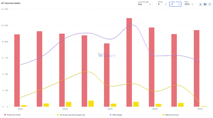 - Áp lực tài chính gia tăng khi Nhà máy lốp Radial GĐ3 đi vào hoạt động trong bối cảnh giá nguyên liệu tăng mà giá bán thì giảm. Chúng tôi cho rằng biên lãi ròng và biên lãi gộp sẽ còn duy trì ở mức thấp như Q1/25 cho tới khi căng thẳng về thuế quan được ngã ngũ.